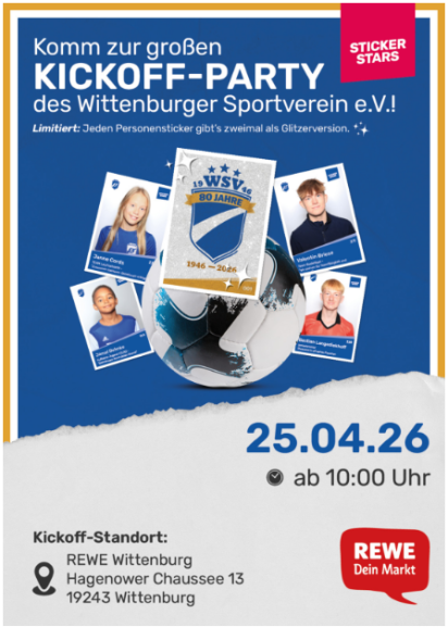 Erstmals dabei und gleich ein voller Erfolg: die neue Basketball-Abteilung, die mit einem tollen Mitmachangebot auf sich aufmerksam machte – eine echte Bereicherung für das Vereinsleben. Ein weiteres Highlight war die Fotoaktion für das Vereinsjubiläum 2026: Schon jetzt landeten viele Bilder im Kasten – ein schöner Ausblick auf das kommende Festjahr, in dem es im Wittenburger Rewe ein WSV-Stickeralbum geben wird!